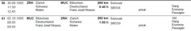 1. Reise in Flugzeug (Jumbo) 1980