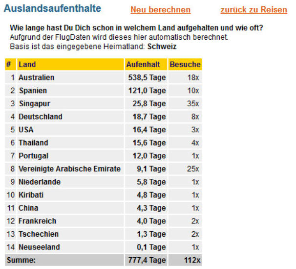 Besuchte Orte (SIN)